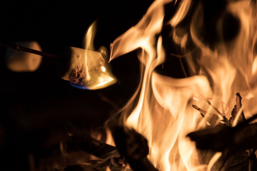 At 8:33 on a recent Thursday night, a few miles from campus, a white butane lighter ignited some kindling, and soon flames illuminated smiles on faces gathered around a campfire.