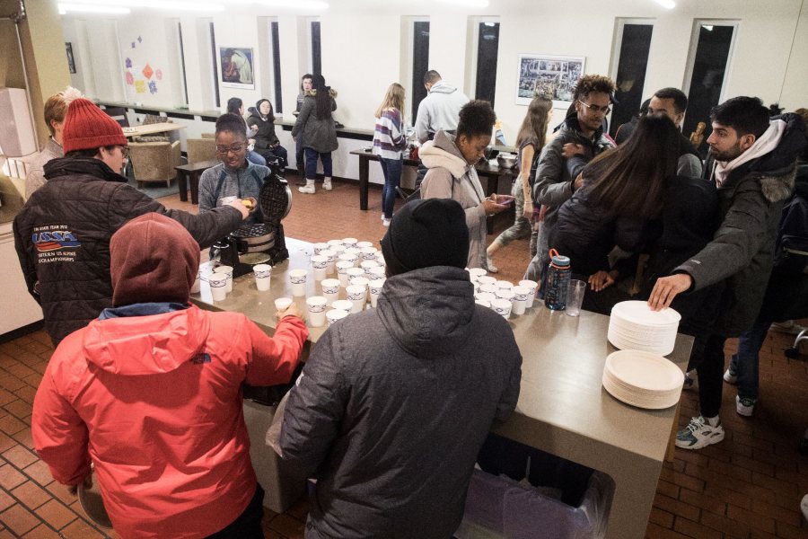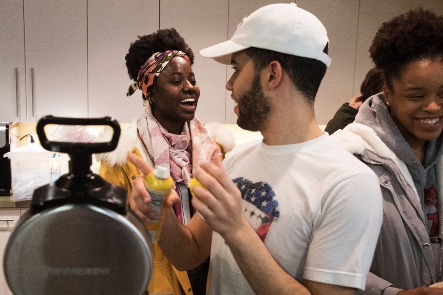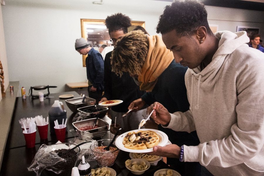 “I didn’t know that there was going to be that many people: Friends from my dorm were here, and some friends from the basketball team came through,” he adds. “There was a lot of different people from different cultures who came together in this one space to have some fun, have a waffle, and take a break from studying.
