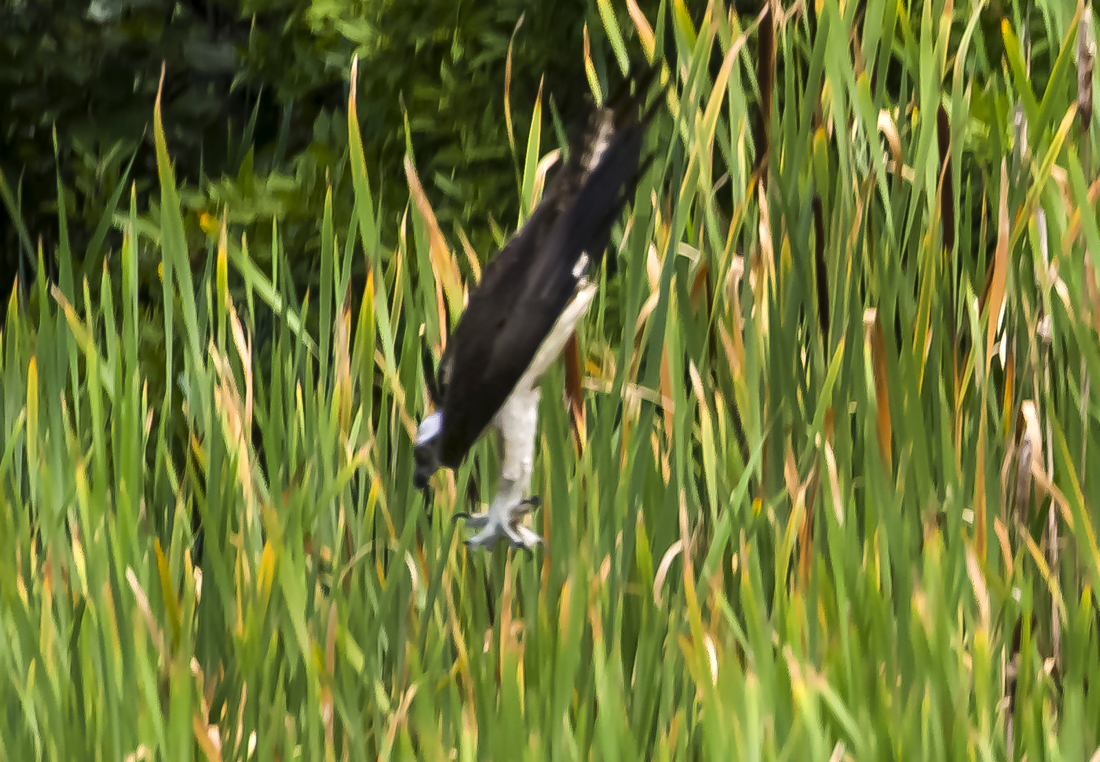 It’s said that when an osprey has a fish in its claws, it orients the fish head first for less wind resistance, though that doesn’t appear to be the case here.