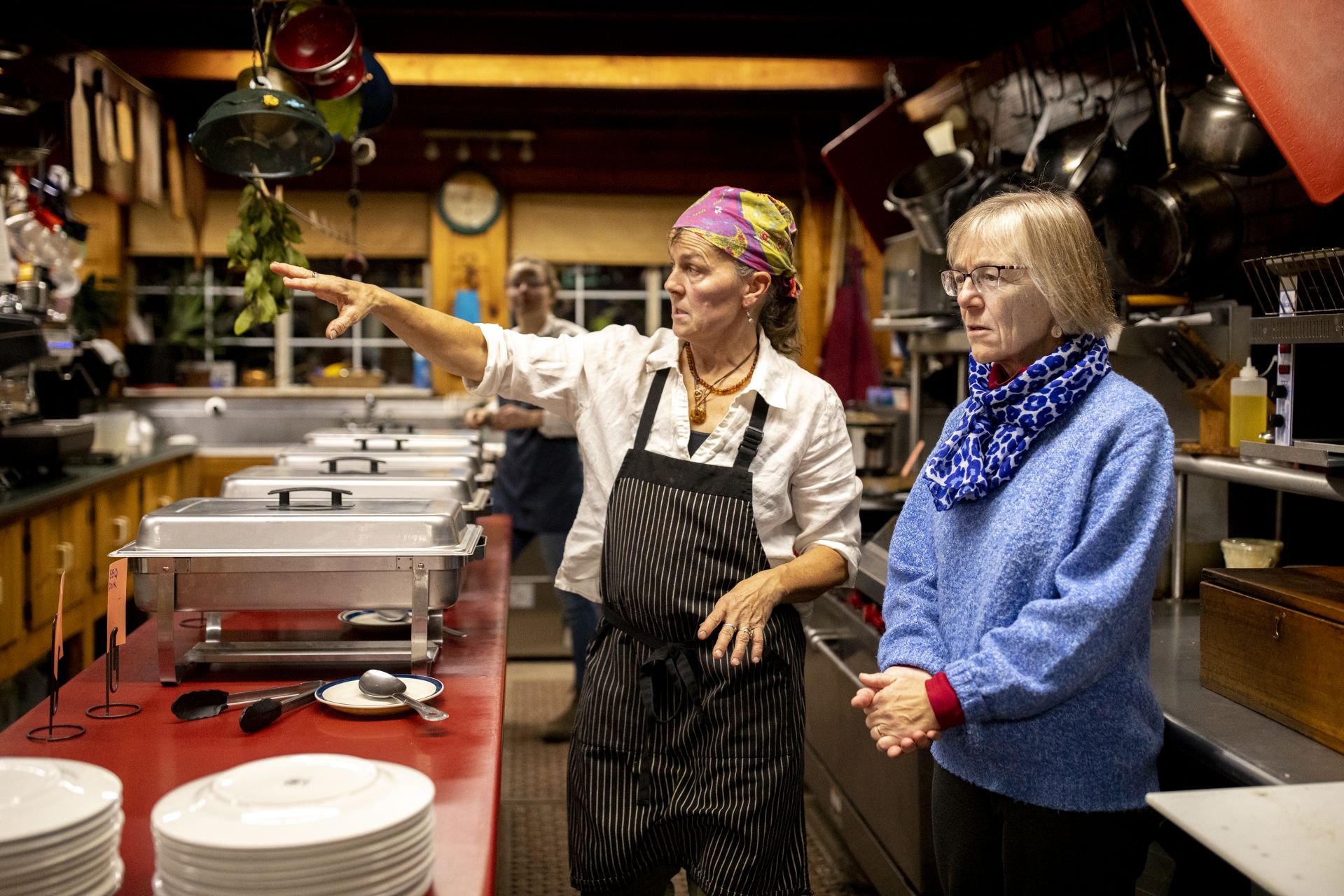 Costlow has breakfast at the Utopia Diner with her longtime friend Ellen Chances, professor of Russian literature at Princeton University. (Phyllis Graber Jensen/Bates College)