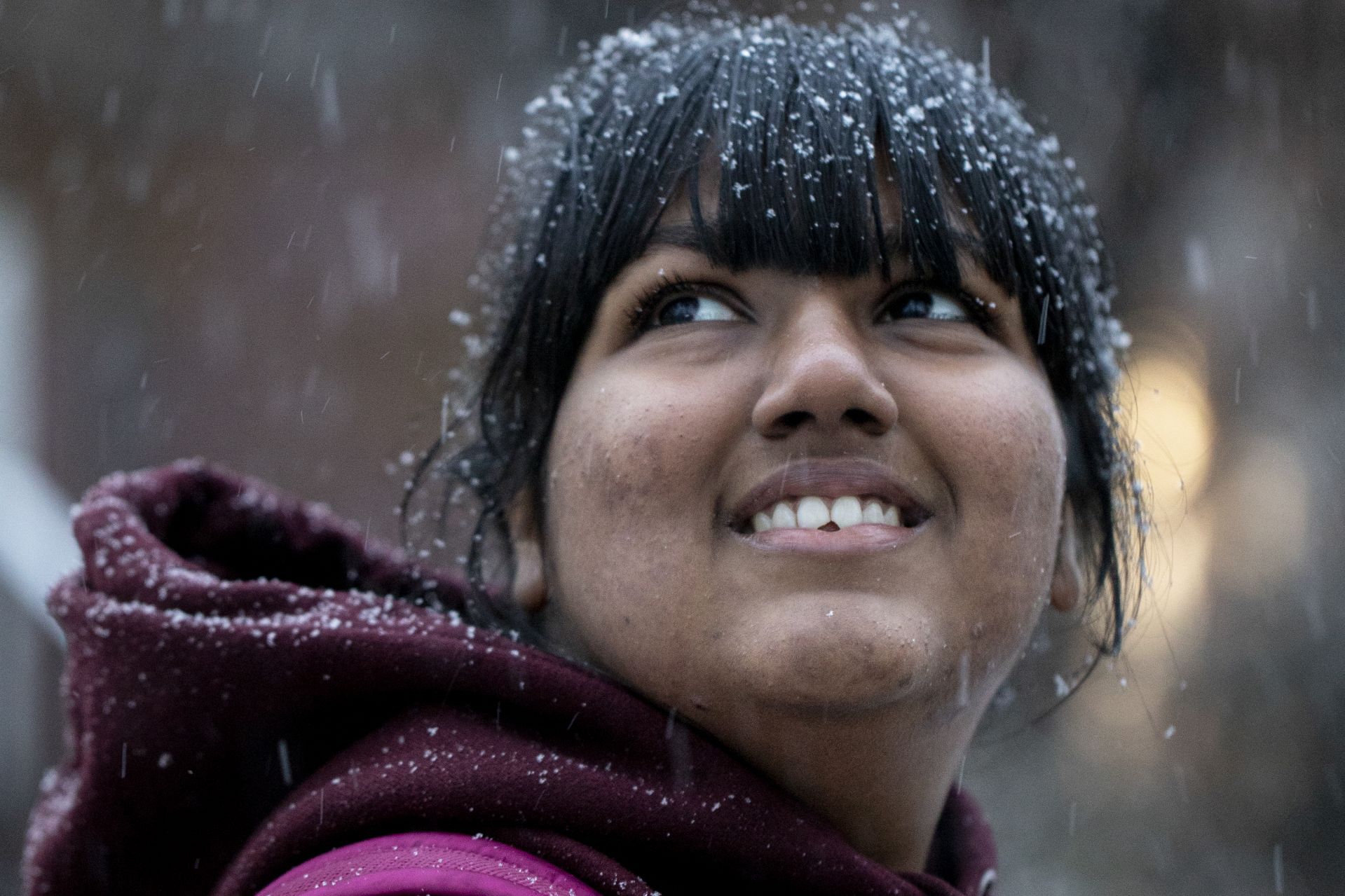 “It’s magical,” says Khushi Choudhary ’23 of Kolkata, India, who pauses on the Historic Quad during the season’s first snow to experience her first snowflakes.