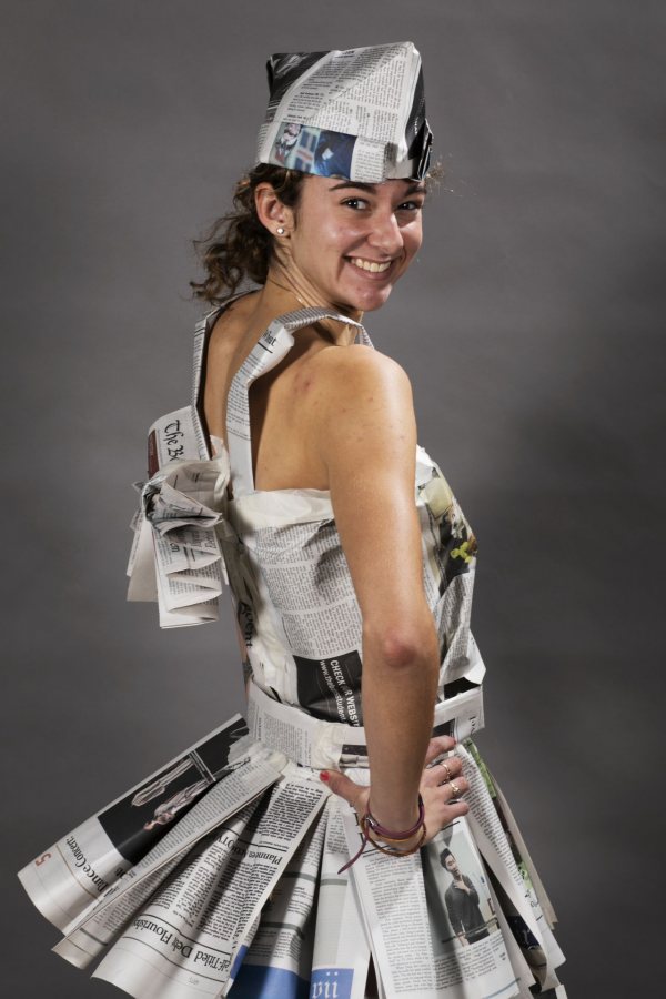 Creative Use of Trash: Layers of tissue paper in the skirt, collected from packaging over the course of a month