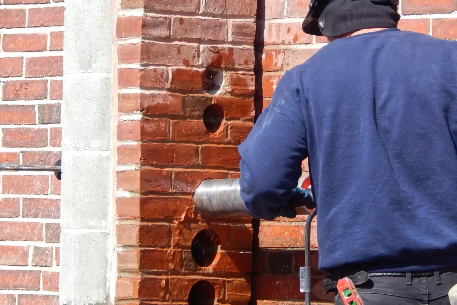 Also in HVAC world (and pardon us if that’s the name of an annual convention somewhere), the building’s new chiller was placed in its well, on Dana’s outside wall facing Hedge Hall, right on schedule. We happened past on Monday morning, when workers were drilling many holes through Dana’s walls for the water connections: Not to be confused with what people do when they watch Netflix, what the chiller chills is a water-glycol blend that helps control the air temperature inside Dana.