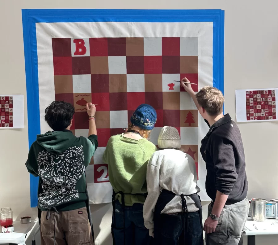 While lunch was being served in Commons, admitted students had a chance to pick up a paintbrush and contribute to a collaborative art project, specifically tailored to the Class of 2030 and led by Maine artist Pat Corrigan. The tagline? “Make your mark on Bates before you even move in.”
