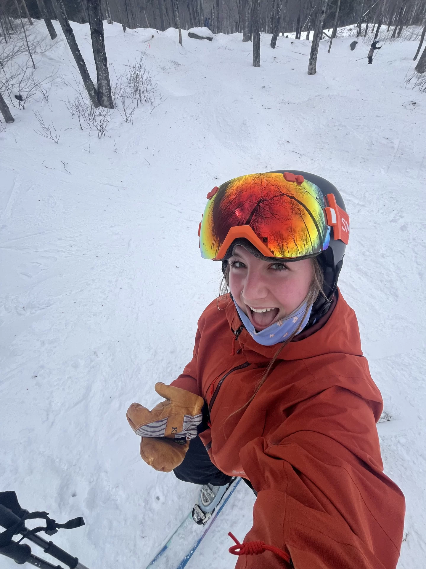 Hi, My name is Isabelle Benson and I am from Norwich, Vermont. I grew up hiking and skiing with my family. I love to run, swim, ski (cross country and downhill), hike, and play with my dog outside. I am excited to start leading trips at Bates. I love being outdoors and out in nature and am excited to find people to do that with. Outside the outing club, I enjoy crocheting, weaving, and spending time with friends.