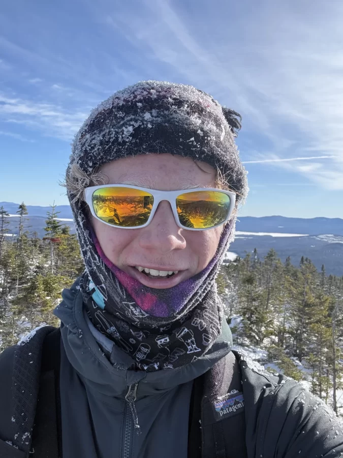 Hi folks! My name is Sam Skinner (he/him), class of 2026. I’m from Saint Paul, Minnesota, where I first got into the outdoors by exploring our terrific state park system. If I’m not in the most obscure and isolated study spaces on campus or concocting my latest Commons creation, you can find me hiking. I can’t get enough of mountains, lakes, rivers, mosses, moose, blueberries, and just about anything else having to do with Maine.