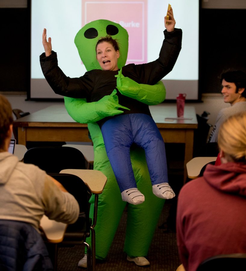 Associate Professor of Rhetoric, Film, and Screen Studies Stephanie Kelley-Romano who teaches rhetorical theory and criticism, wrote her doctoral dissertation on The Myth of Communion: A Rhetorical Analysis of the Narratives of Alien Abductees, in which she drew from 130 interviews with people who believe they’ve been abducted by aliens. One of her conclusions is that people who believe they’ve been abducted have woven a collective myth that acts as a kind of religion.